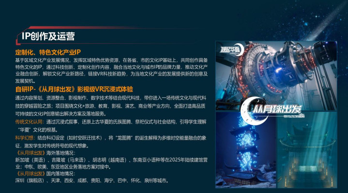 在国内政策方面,国家“十五五”明确支持数字经济、虚实融合、文化出海。在元宇宙、数字经济政策密集出台,尤其是在文旅、教育、农业和科技方面国家出台政策的同时,还拨款推动数字化建设和升级,多地建VR产业园 。